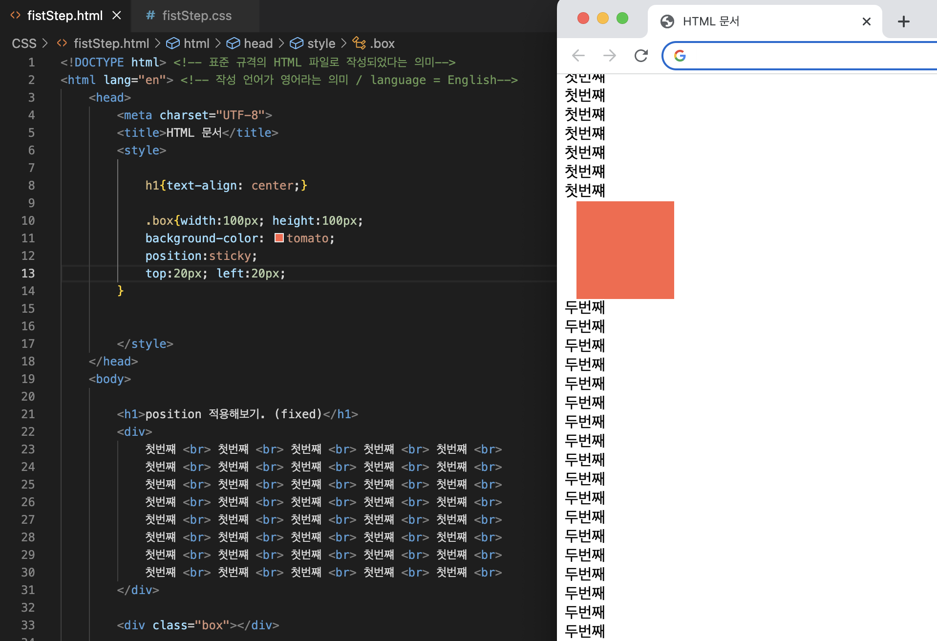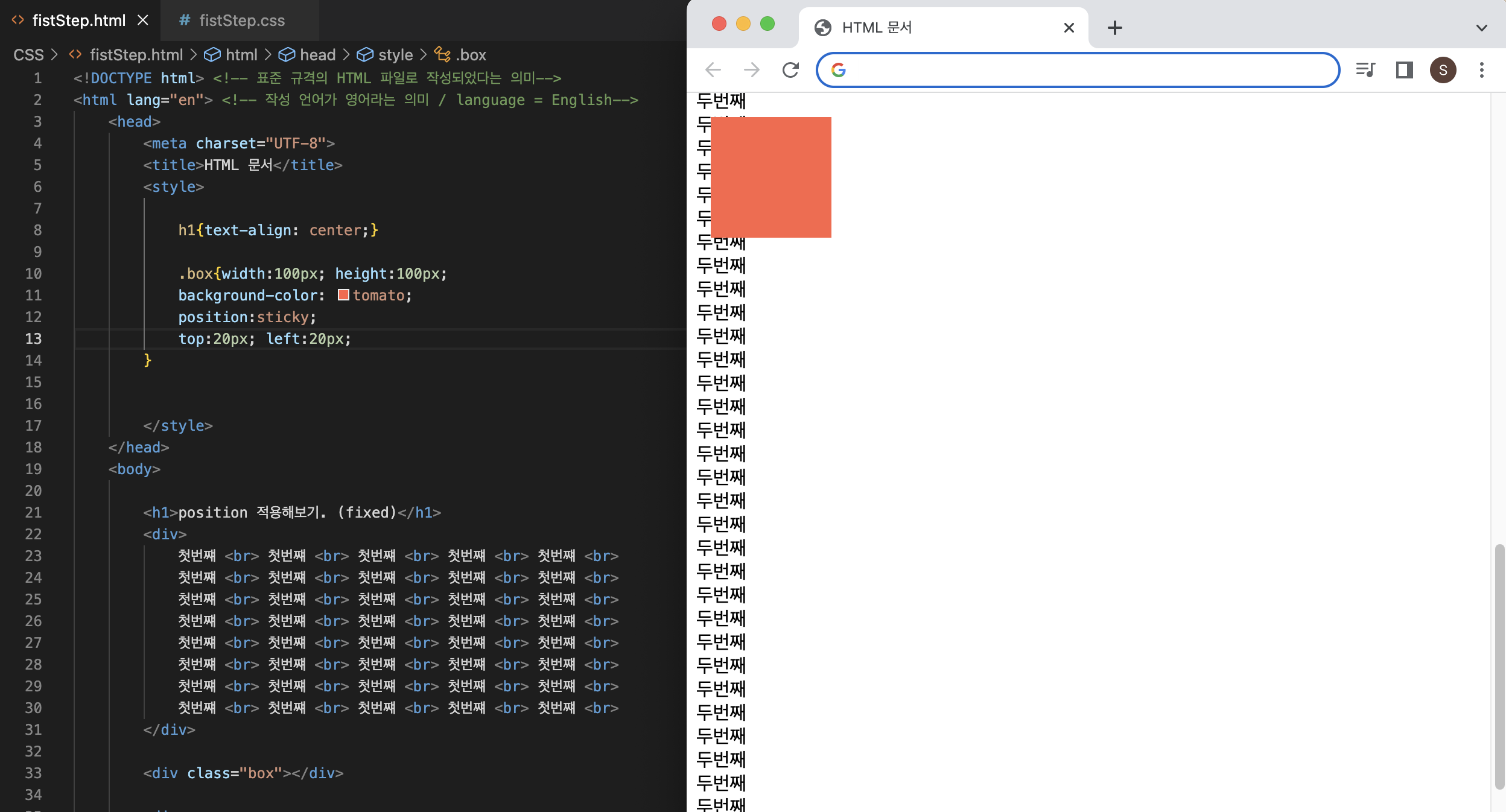 3강. position 2편, fixed sticky