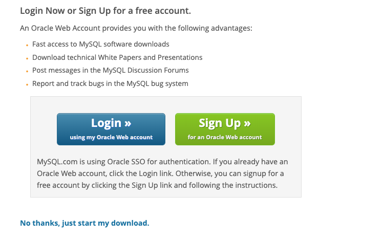 버전을 선택하고 Download를 누르면 로그인하라는 창을 보여준다.